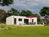 Le modèle Alizé 1 TT RE20 est une maison plain-pied de 65 m², conçue pour allier simplicité et modernité. Sa forme rectangulaire et sa façade de 11,54 mètres permettent une implantation facile sur des terrains de taille moyenne. Ce modèle se distingue par son style contemporain, avec une toiture plate, qui lui confère une allure résolument moderne et urbaine.