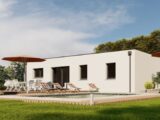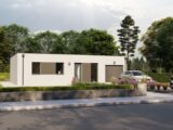 L'intérieur est spacieux et lumineux, avec une grande pièce de vie ouverte, trois chambres, une salle de bain bien agencée et des rangements pratiques. Ce modèle est parfait pour les amateurs de design contemporain à la recherche d'une maison familiale.