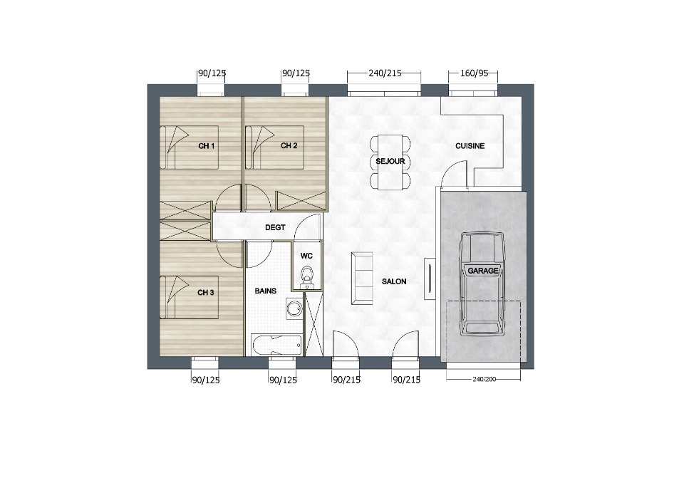 Plan maison 4 pièces 3 chambres Surface maison 82 à 82.3 m2