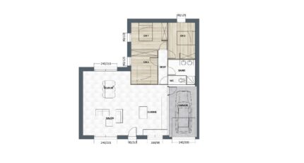 À l'intérieur, la maison privilégie le confort et la convivialité : une grande pièce de vie ouverte, baignée de lumière, des chambres bien isolées pour des nuits paisibles, et des rangements bien pensés. Le garage intégré ajoute une dimension pratique sans compromettre l'esthétique. Conforme à la RE2020, ce modèle garantit une performance énergétique élevée, pour un bien-être durable.