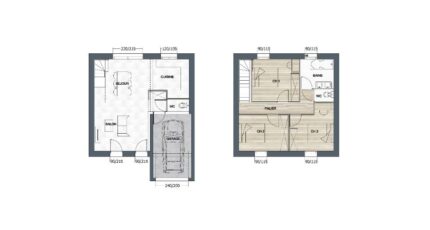 Avec ses 78 m² et son étage complet, le modèle Zéphyr 1 FP RE2020 est conçu pour offrir un cadre de vie harmonieux et lumineux. Sa forme carrée et sa façade de 7,74 mètres favorisent une implantation facile, tandis que la toiture à 1 pan apporte une touche contemporaine et élégante. Les ouvertures généreuses permettent à la lumière naturelle d'inonder les espaces, créant une atmosphère chaleureuse et apaisante.